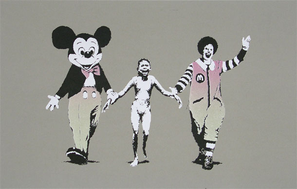 そんなお騒がせもののバンクシーですが、作品はなかなか皮肉的です。